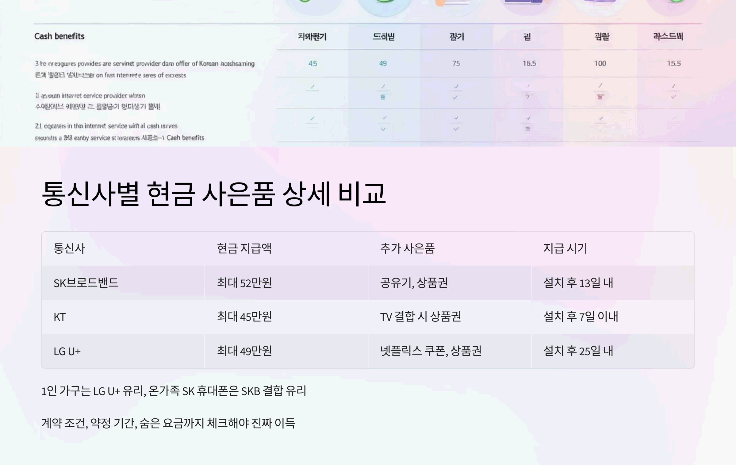 통신사별 인터넷 현금 사은품 혜택 비교 (2025년 최신)