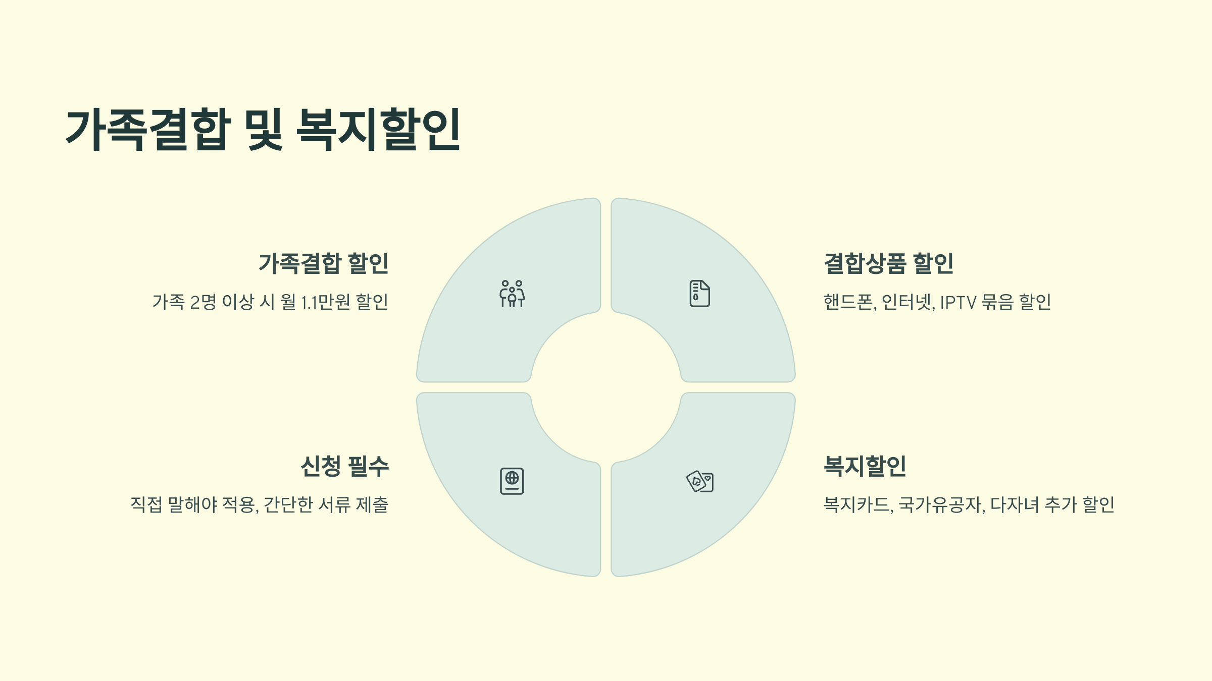 2025년 기준, KT/LG/SK 전부 가족 2명 이상이 한 통신사에 묶이면 월 최대 1.1만 원까지 할인 들어가요.